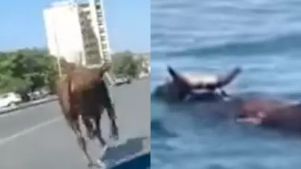 В Актау на видео сняли "забег" и попытку уплыть, совершенные быком, передает  Tengrinews.kz со ссылкой на Lada.kz.
