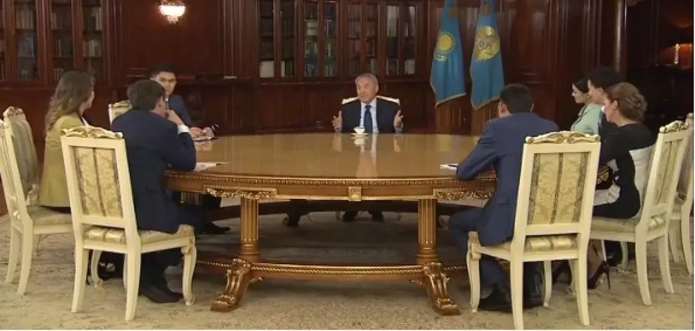Целесообразность проведения Олимпийских игр в Казахстане обсудил Назарбаев Нурсултан Назарбаев на встрече с представителями СМИ в Акорде. Кадр телеканала СТВ.