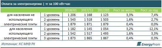 На первом уровне потребления стоимость 100 киловатт/час достигала 1 206 тенге для граждан без электроплит и 1 182 тенге для населения, использующего электроплиты.