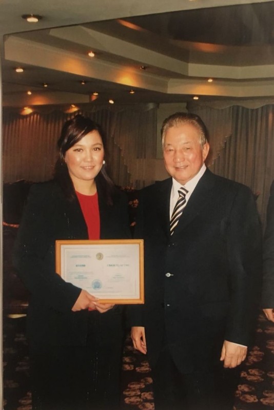 2006 год. Айнур Сабитова и Токмухамед Садыков после церемонии вручения гранта Президента РК "Лучший преподаватель вуза"