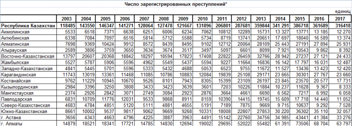 Как сообщалось ранее, с 2007 по 2017 год включительно уровень преступности в Алматы вырос более чем в 4 раза.