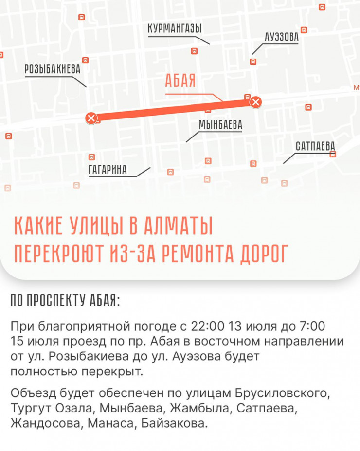 Временно ограничат движение по ряду участков по проспектам Аль-Фараби и Абая.