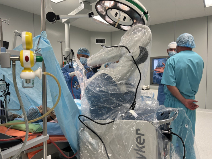 "Буквально второй день мы проводим операции с помощью робота. В первую очередь робот - это умный инструмент. Он не заменяет человека, а помогает. Робот-ассистент - умный инструмент, который не просто видит, где мы находимся, он еще и может с точностью до одного миллиметра, до одного градуса корректировать положение инструмента, человек настолько точно не увидит.
