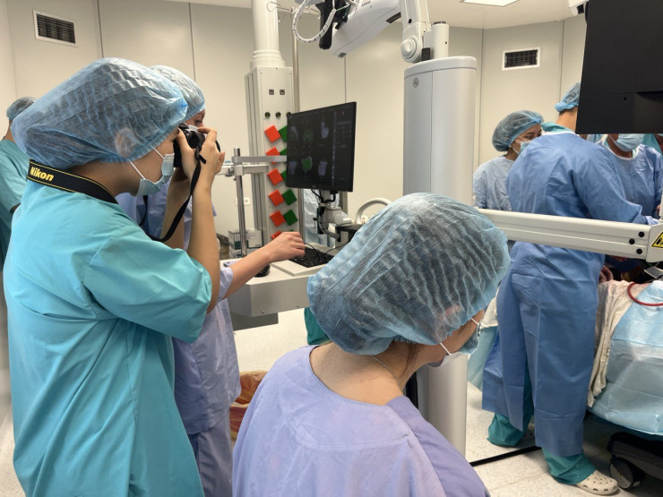 В операционной было достаточно шумно - врачи отпиливали пораженные костные ткани пациентки. IT-специалисты следили за процессом через компьютерный экран, они подсказывали врачам дальнейшие действия и переговаривали детали.