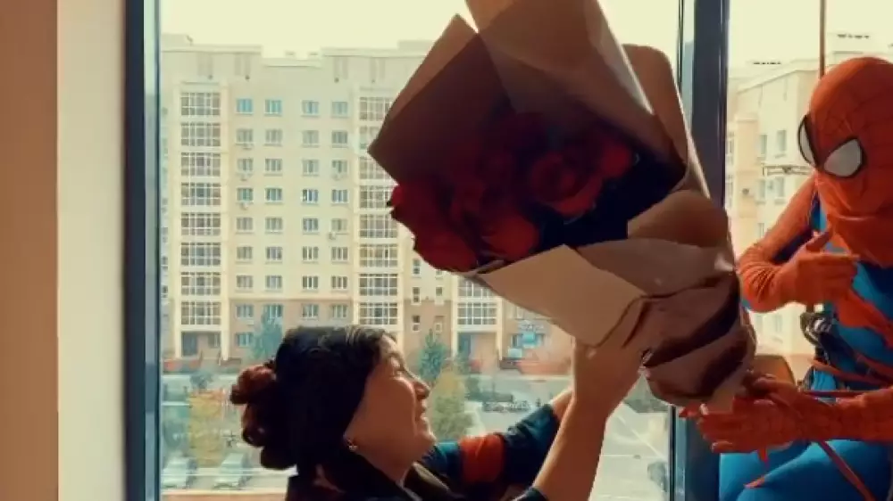 Промышленный альпинист Кайратбек Турганжанов, помимо обычных ежедневных занятий, таких как ходьба по канату, мытье окон на высоте, фиксация проемов в оконных рамах, проведение утепительных мероприятий, организует различные семейные праздничные поздравления в образе "Человека-паука".