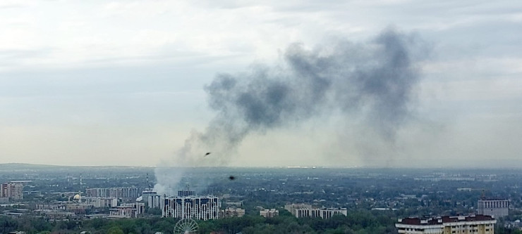 Дым от горящего автобуса напугал жителей Алматы, передает корреспондент Tengrinews.kz.
