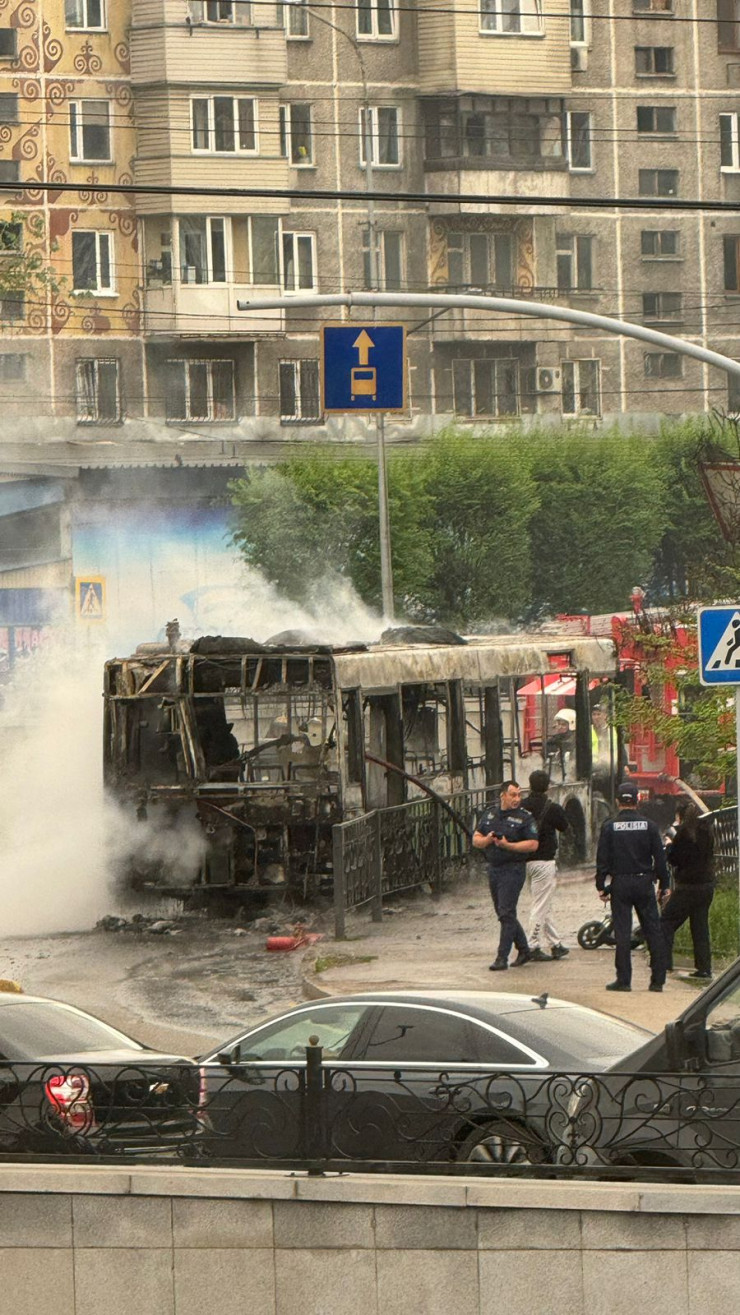 В пресс-службе ДЧС Алматы сообщили, что 25 апреля в 15:05 силы и средства ДЧС направлены в Жетысуский район, проспект Райымбека, угол улицы Суюнбая, на сообщение о загорании автобуса. По прибытии, обнаружено