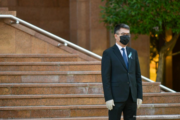 У шестого подъезда можно было увидеть опустившего голову министра труда и социальной защиты населения Биржана Нурымбетова.