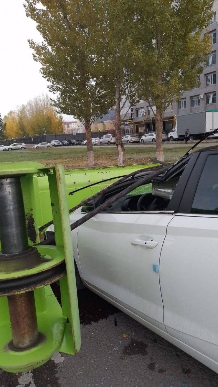 В Астане при строительстве ЛРТ на землю опрокинулась многотонная буровая станция и раздавила новенький автомобиль. Фото с места инцидента опубликовал телеграм-канал NewsRoom99, передает Tengrinews.kz.