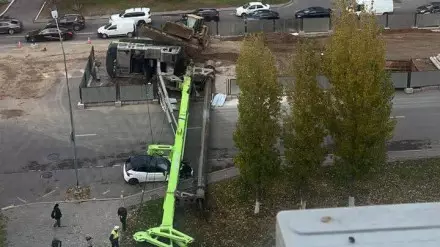 По информации пресс-службы City Transportation Systems, ЧП произошло 21 октября в 17:00 во время производства буронабивных работ по устройству сваи. "Буровая станция провалилась в пустоту асфальта правой гусеницей. В неположенном месте была припаркована машина Hyundai. Пассажиров и водителя в салоне не было. Пострадавших нет. Стрела буровой станции упала на кузов этой автомашины. Территория ограждена. Работает полиция", - прокомментировали в компании.