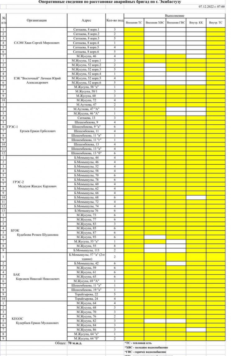 "Энергоисточник работает в штатном режиме. Экибастузская ТЭЦ предпринимает все необходимые усилия для нормализации обстановки с отоплением в городе. Но, к сожалению, разбалансированность гидравлического режима, произошедшая в результате событий последних дней, в том числе несанкционированных сливов теплоносителя потребителями и КСК, усложняет эту работу.