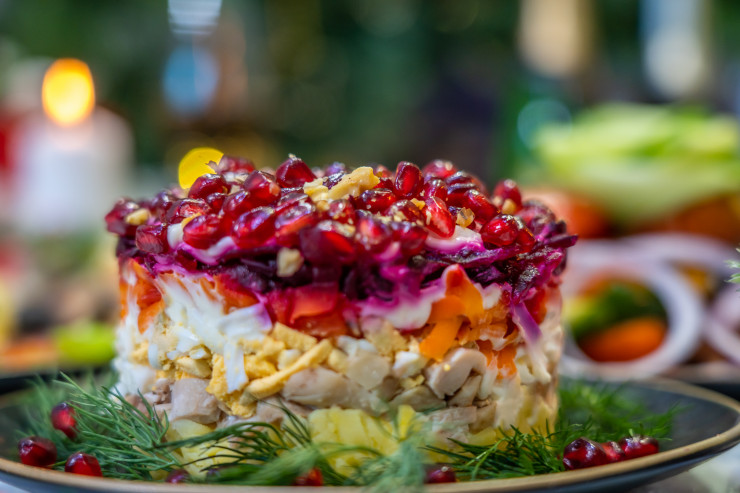 Самые популярные салаты - оливье, селедка под шубой, корейские салаты, морская капуста, "Гнездо глухаря" и "Крабовый" - любимая еда в любое время года в любом регионе. Также круглый год востребованы соленья. Особенно соленая и квашеная капуста: классическая или с грибами, со специями.