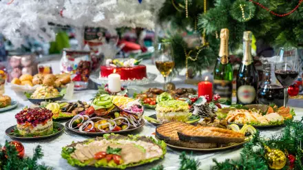 Самые популярные салаты - оливье, селедка под шубой, корейские салаты, морская капуста, "Гнездо глухаря" и "Крабовый" - любимая еда в любое время года в любом регионе. Также круглый год востребованы соленья. Особенно соленая и квашеная капуста: классическая или с грибами, со специями.