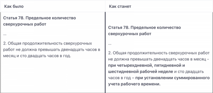 - в связи с этим пункт 2 статьи 78, предельное количество сверхурочных работ разбивают на 4-, 5-дневную рабочую неделю.