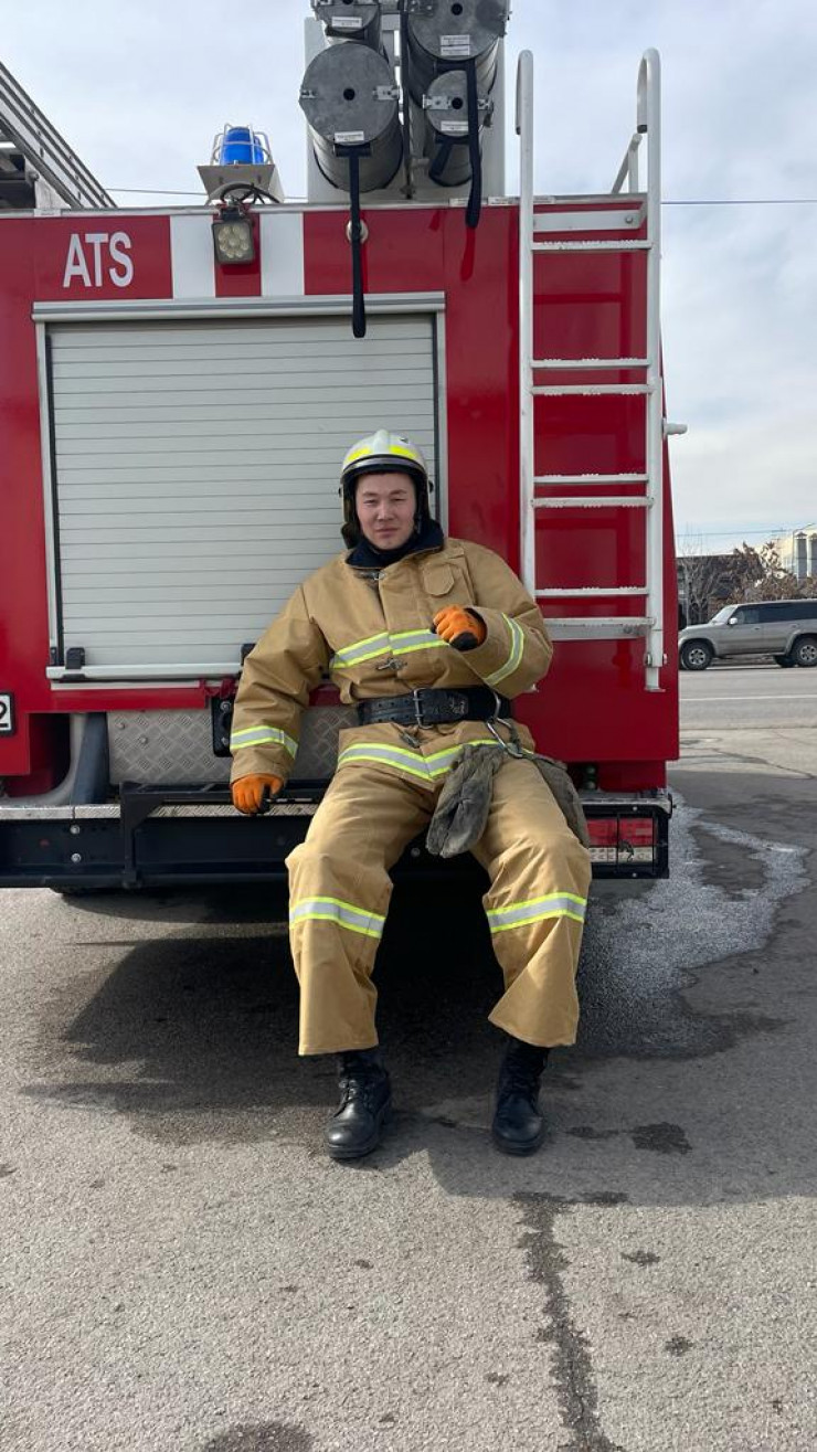 Бекзат Желеубай - уроженец Жамбылской области. Окончил в Таразе колледж МЧС. Год как работает в алматинской пожарной части СПЧ-2.