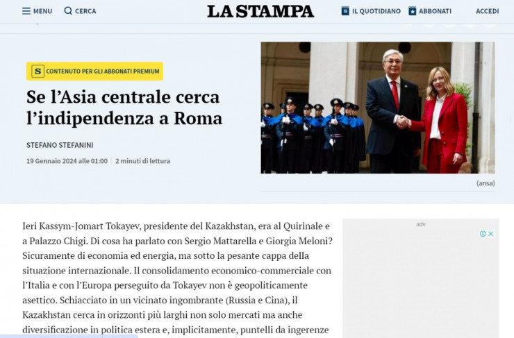 La Stampa пишет, что Токаев и Мелони говорили "об экономике и энергетике, но под прикрытием международной ситуации".