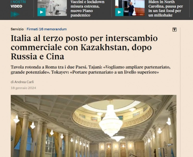 Газета Il Sole 24 Ore рассказывает о круглом столе по инвестициям между Казахстаном и Италией, который состоялся на вилле Фарнезине. В нем приняли участие Президент Касым-Жомарт Токаев, почти 30 итальянских чиновников и главы более 40 компаний.