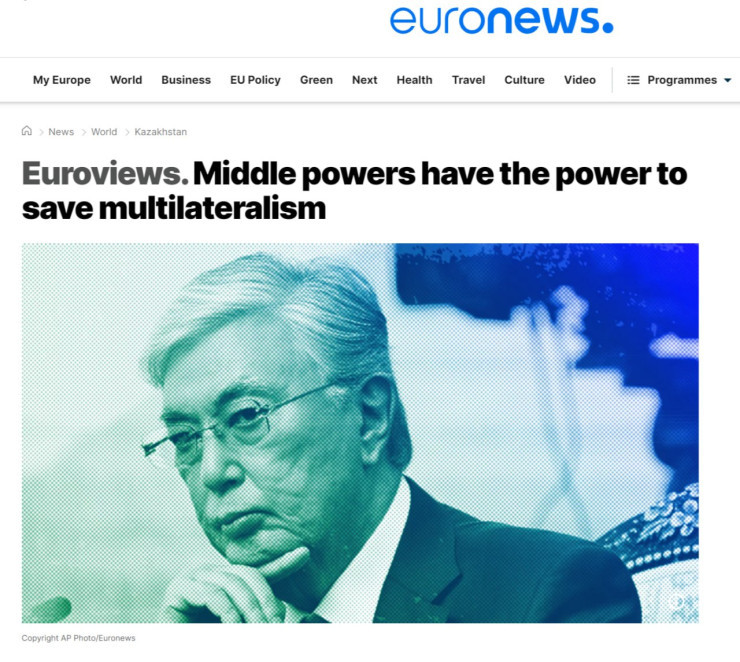 Статью Касым-Жомарта Токаева опубликовал Euronews. Материал вышел под заголовком "Средние державы способны спасти мультилатерализм". Президент Токаев подчеркивает, что Казахстан всегда был глубоко привержен мультилатерализму и постоянно искал новые площадки для международного диалога и совместных действий.