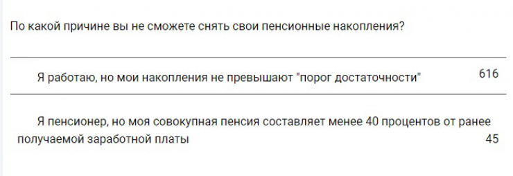 Из 1882 читателей большая часть (69 процентов) ответили, что подпадают под условия программы. 21 процент опрошенных не смогут снять свои накопления. Еще 10 процентов не понимают, смогут ли они воспользоваться новой программой.