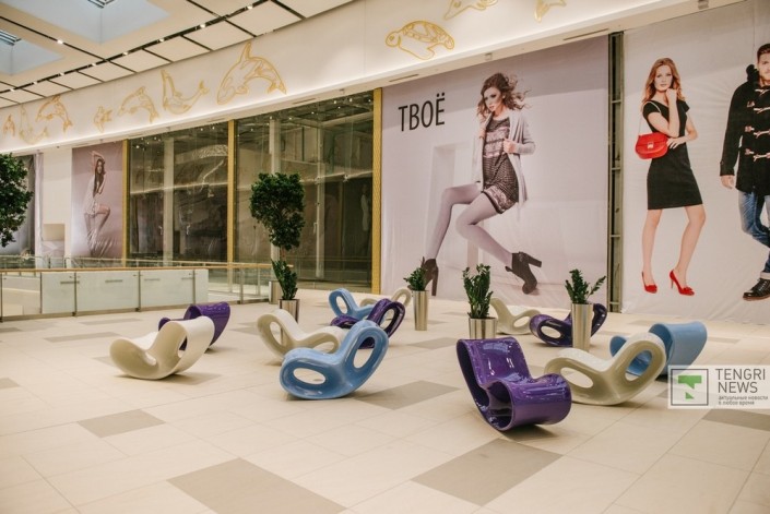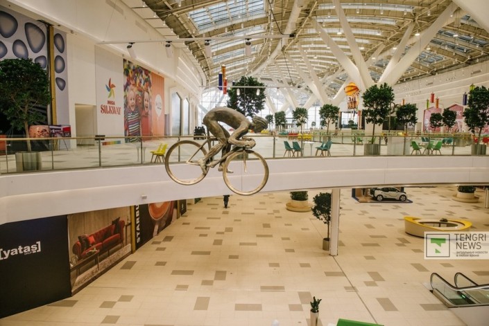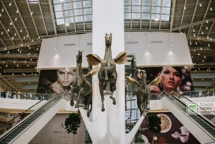 В новой "Меге" можно встретить большое количество различных арт-объектов. У главного входа посетителей встречает скульптура "Тулпары". По задумке автора, она олицетворяет красоту казахстанской степи.
