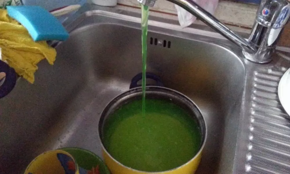 Из крана горячей воды в квартирах Астаны течет жидкость зеленого цвета, передает корреспондент Tengrinews.kz.