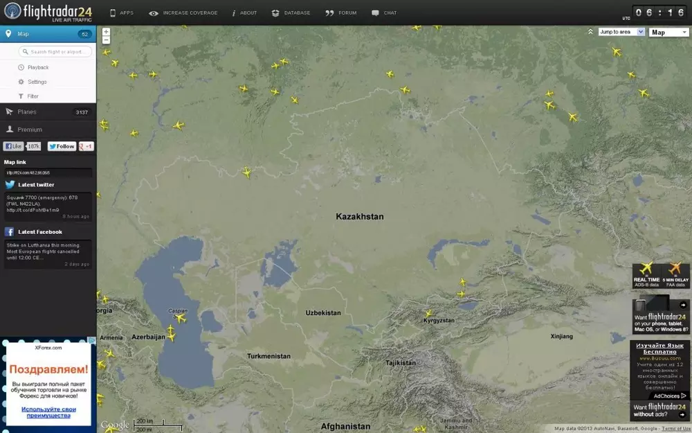 Минтранском Казахстана не считает данные портала Flightradar24.com, на котором в реальном времени отображаются полеты пассажирских самолетов, достоверными, передает корреспондент Tengrinews.kz со ссылкой на пресс-службу ведомства. Сайт поддерживается сообществом энтузиастов, с целью отследить обстановку в мировом воздушном пространстве. Как отметили в Минтранскоме, на сайте отображаются метки только воздушных судов, оборудованных специальным транспондером (передатчиком) типа ADS-B. "Передатчиками ADS-B оборудуются гражданские самолеты последних 10-15 лет выпуска, отсюда следует, что фактическая воздушная обстановка данным сайта flightradar24.com не соответствует, так как во всем мире эксплуатируются и судна, в которых подобные транспондеры не установлены", - сообщили в пресс-службе. В ведомстве отметили, что поскольку действующее законодательство Казахстана не обязывает авиаперевозчиков и других владельцев воздушной техники применять передатчики ADS-B, то у госорганов отсутствуют данные по количеству таких приборов. Информация об их использовании не представляет интереса и на официальном уровне сотрудничество с порталом Flightradar24.com не налажено, сообщили в Минтранскоме: "Оборудование ADS-B является вспомогательным и вопрос оснащения им своих воздушных судов решается авиакомпаниями самостоятельно".