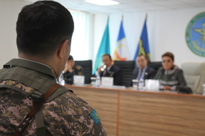 После экскурсии по полигону сенаторы занялись реализацией их основной задачи, из-за которой они и прибыли в часть. Гости направились в актовый зал, где их ждал офицерский состав, перед которыми сенаторы выступили с разъяснением обращения Президента Нурсултана Назарбаева "Пять социальных инициатив".