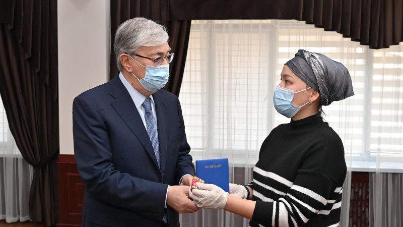 Затем Касым-Жомарт Токаев лично вручил родственникам награды, которых их мужья и отцы были удостоены за проявленную отвагу и самоотверженность при исполнении воинского и служебного долга, за подвиги, совершенные при защите интересов государства.