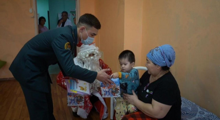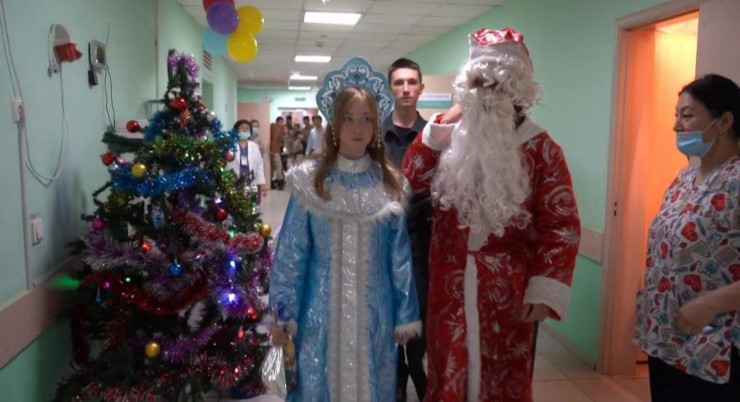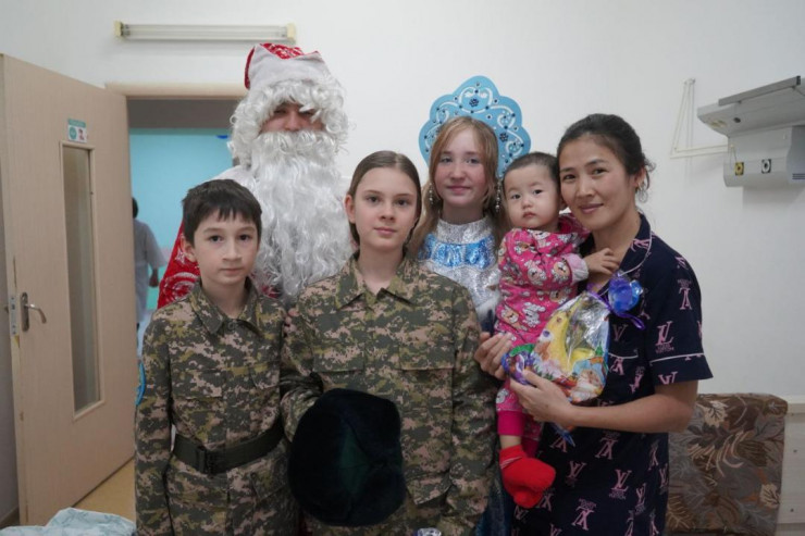 Курсанты Военного института Сухопутных войск имени Сагадата Нурмагамбетова, воспитанники военно-патриотических клубов "Киров" и имени полковника Бориса Керимбаева общеобразовательной школы № 95 побывали во второй детской городской больнице города Алматы и поздравили детей с наступающим Новым годом.
