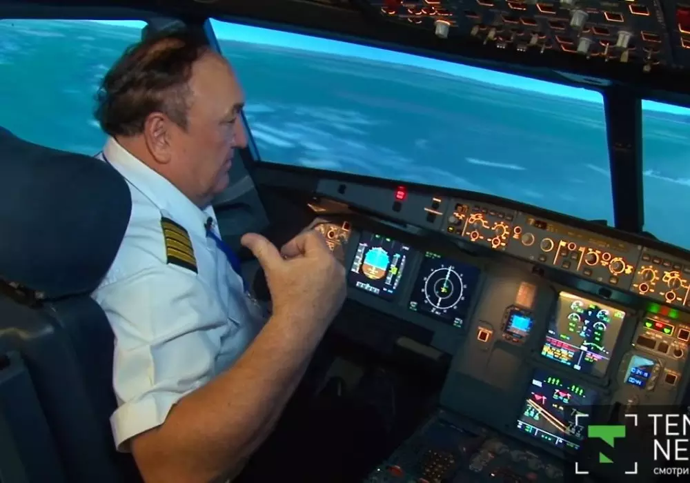 Пилот-инструктор Ильяс Исаков на авиасимуляторе Airbus A320 сымитировал ситуацию невыпуска передней стойки шасси самолета. Он снизил скорость и выпустил шасси, однако на приборе вместо трех зеленых треугольников загорелось всего два. Это значит - носовое шасси отказало. После второй попытки тоже ничего не вышло. Тогда, отметил Ильяс, действовать нужно строго по инструкции. Пилот попытался выпустить шасси вручную. У него это получилось, и самолет благополучно приземлился. Если же шасси не выпускается, поясняет Ильяс, значит, есть механическое повреждение.