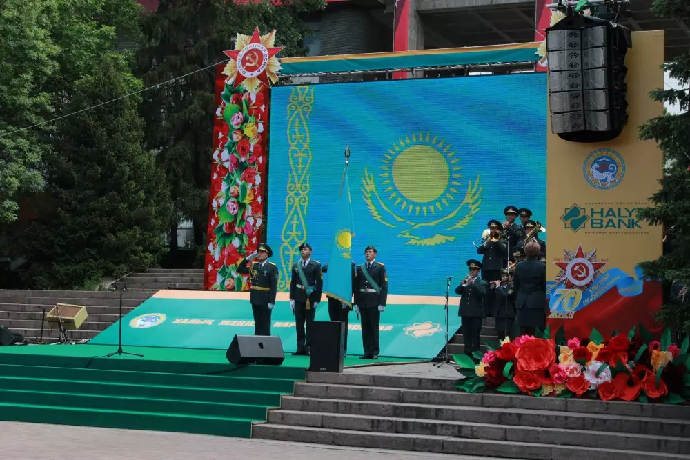 После торжественной речи на большом экране прошла видеотрансляция военного парада в Астане, посвященного 70-летию Победы в Великой Отечественной войне. В ходе мероприятия также была организована демонстрация боевой техники, военного обмундирования и вооружения. К мемориалу Вечного огоня состоялось торжественное возложение цветов.
