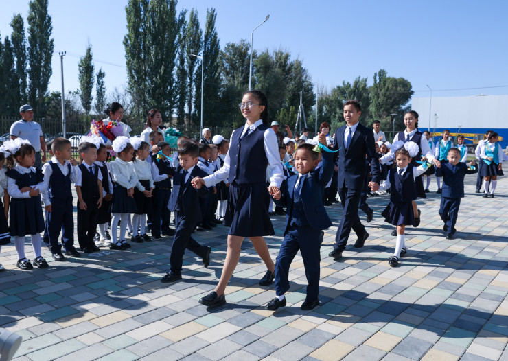 В торжественной церемонии первого звонка приняли участие аким Жамбылской области Ербол Карашукеев, ветераны-педагоги, жители села.