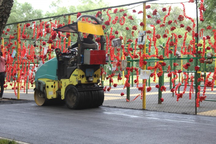 Отметим, что на данный момент возле спортивной площадки, где произошло нападение, ведутся ремонтные работы по укладке асфальта.