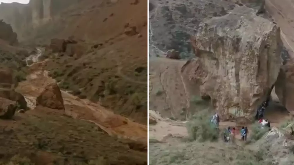Очевидец снял на видео, как сель накрывает людей в Чарынском каньоне