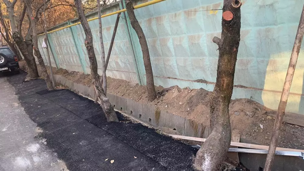 Деревья, плотно обложенные асфальтом, сфотографировали в Алматы. Экоактивисты говорят, что это сделала строительная компания, передает корреспондент Tengrinews.kz.