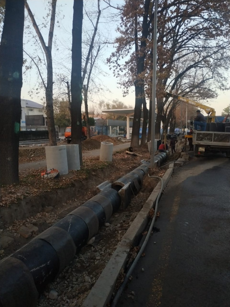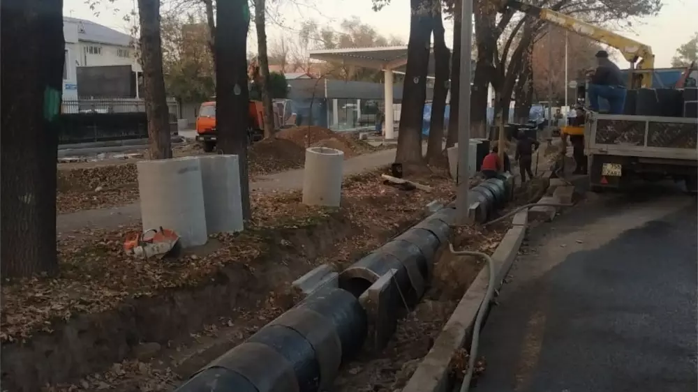 Алматинцы пожаловались на самопроизвольную реконструкцию арычной системы и вырубку деревьев по адресу Рыскулова, 57. Они утверждают, что руководство АЗС проводит эти работы незаконно.