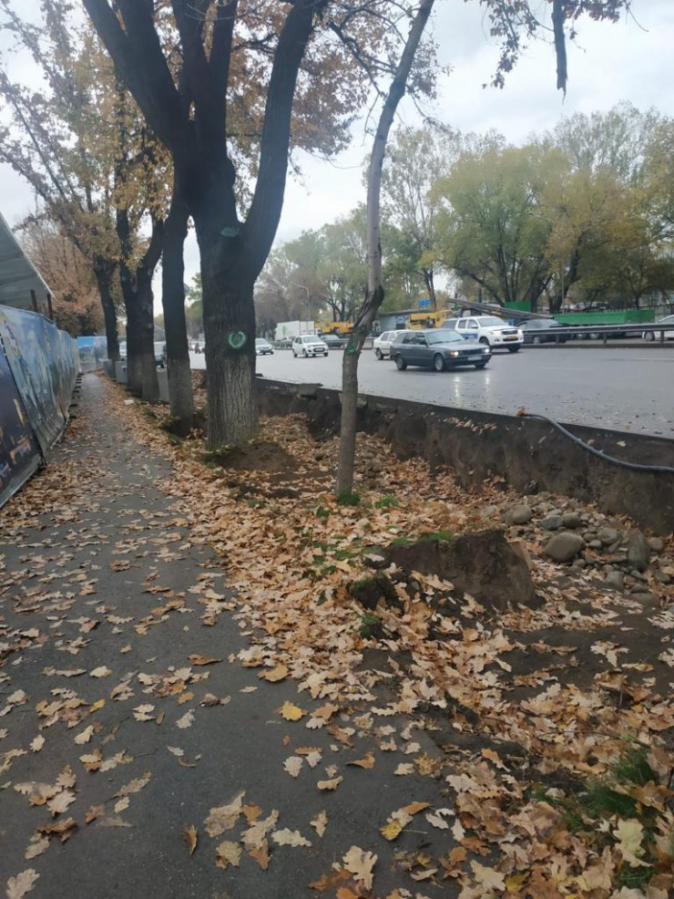 "Мой офис находится рядом с заправочной станицей. Раньше она была маленькая, недавно ее начали расширять и самопроизвольно реконструировали арычную систему. Они хотели построить въезд на заправку, но им мешали деревья. Я написала в Open Almaty, начала бить тревогу, чтобы деревья не срубили. Также написала заявление в природоохранную полицию, но посреди ночи все-таки срубили три дерева. Это большой ущерб и так загрязненному воздуху в районе", - говорит жительница Алматы Айгуль.