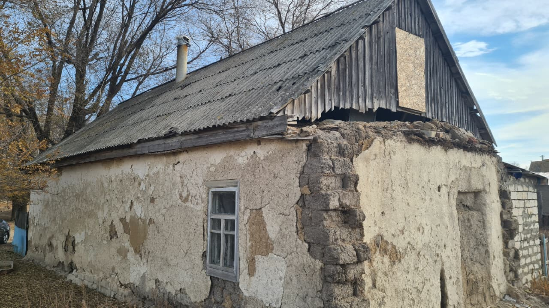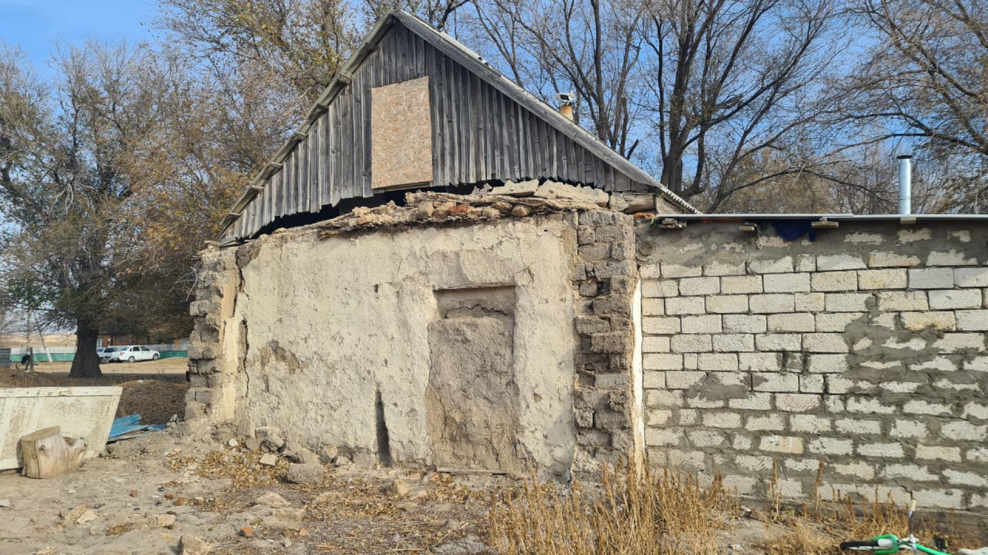 Старый саманный дом для Улжан Бисембаевой давно стал ловушкой. Ещё весной здесь рухнула пристройка, где женщина хранила посуду и припасы. Несколько месяцев она жила среди завалов — сама разгребала обломки, замазывала трещины, подбивала стены досками.