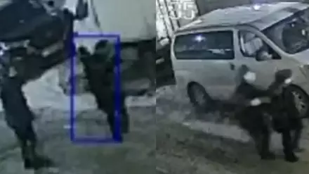 На кадрах видно, что мужчина подбегает к девушке сзади и, по всей видимости, хватает за шею. Девушка пытается сопротивляться, но мужчине удается утащить ее за припаркованный автомобиль. За кадром слышны страшные крики женщины.