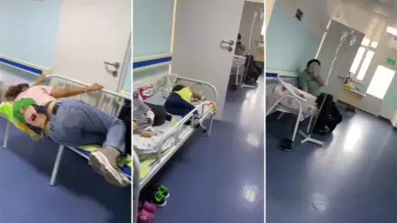 На видео, которое распространилось в социальных сетях, показан коридор больницы. На скамейках для ожидающих пациентов постелены покрывала, на которых лежат дети и взрослые пациенты. Кроме того, в коридор вынесены несколько кроватей с больными.