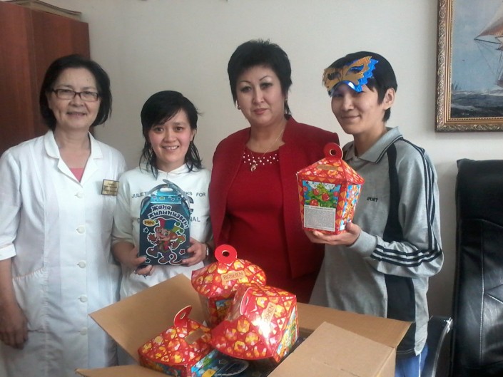 Школьное самоуправление НИШ совместно с Федерацией профсоюзов РК подготовили настоящую новогоднюю сказку про Золушку, которая никого не оставила равнодушным. Родители и учащиеся интеллектуальной школы подготовили множество подарков: книги, альбомы, фломастеры, карандаши. Кроме этого, зная, что в этом доме проводятся занятия по трудотерапии, привезли для занятий пряжу, бисер, нитки, вышивку и другие материалы для рукоделия и прикладного искусства. В свою очередь, члены Федерации профсоюзов РК подарили конфеты постояльцам дома-интерната.