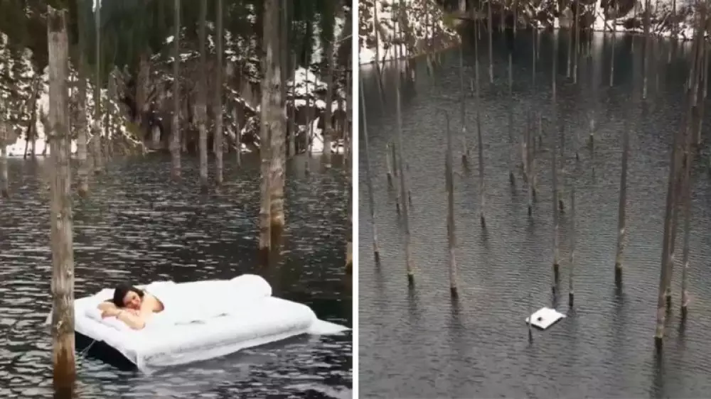 "На мне был спасательный жилет, я не была без одежды, как многие пишут. От берега заплыв был недалекий, хоть на видео показано иначе. Ничего опасного там не было. Озеро само небольшое. Конечно, я призываю казахстанцев не повторять моих поступков без разрешения и специальной подготовки. Не делать таких роликов. У нас было очень много людей для подстраховки, которые были на старте, если что-то бы пошло не так. Были тросы, которые удерживали матрас. Ну и экологический вред мы не наносили природе. Пришли, отсняли и ушли", - поделилась вайнер.