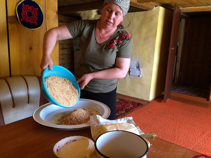 "Я родилась и выросла в соседнем селе Кызылегис. Закончив учебу в средней школе, стала учиться дальше. Но не думала, что стану снохой в казахской семье. Я благодарна судьбе, безгранично довольна своей жизнью, семьей. Я приняла ислам, вместе с моим мужем в мечети прошли обряд неке, мулла дал мне имя Зухра. Мне приятно, что я имею возможность развивать национальную кухню. Не вижу в этом особых трудностей. Я жила в селе, все было мне знакомо. Быть казахской келин для меня это счастье", - рассказала собеседница издания.