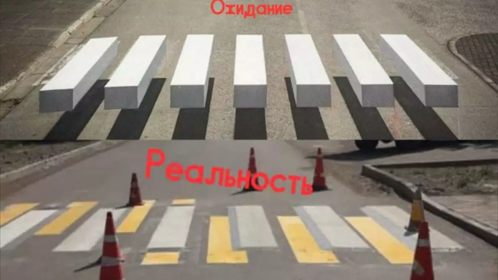 "Это лютый колхоз, а не 3D-разметка. На фото 3D-дорожная разметка. Первое фото это ожидание, а второе – то, что получилось. Это 3D. Прикиньте). Теперь такая красота за наши с вами деньги появится и в других местах Караганды", - написала в Facebook карагандинка Ботагоз Омарова.