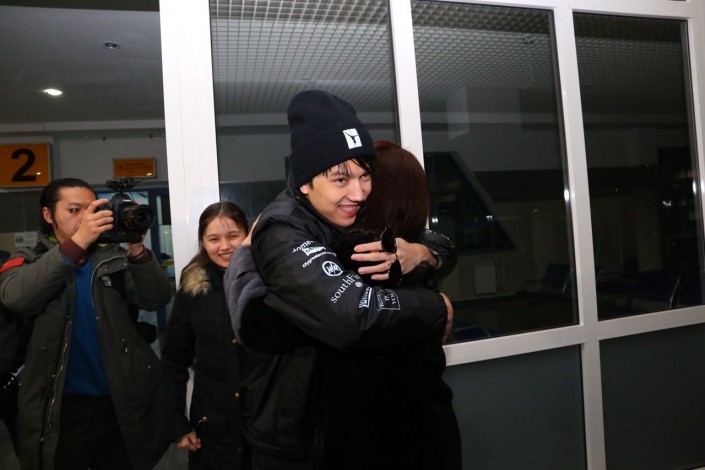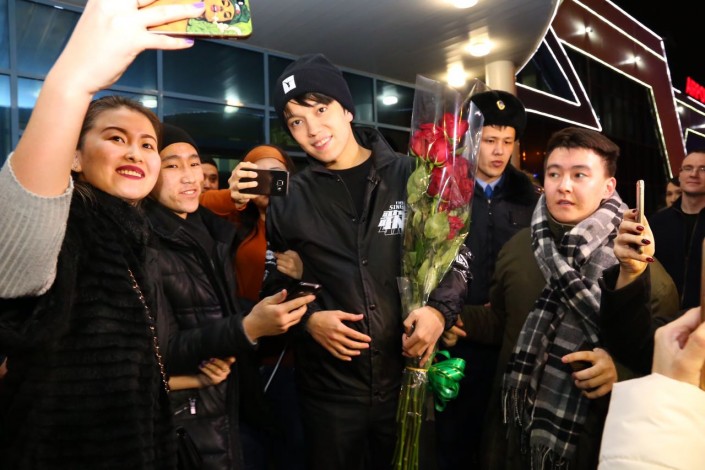 Из аэропорта Димаша и команду журналистов из Китая увезли на микроавтобусе. Из Актобе молодой исполнитель уедет уже в понедельник.