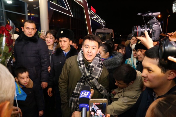 Вечером в субботу, 25 февраля, казахстанский певец Димаш Кудабейрген прилетел на свою родину - в Актобе. В аэропорту его встречали толпы фанатов, а также аким Актюбинской области Бердибек Сапарбаев и другие чиновники. Видео с места событий появилось на страницах aktobe_zello и zello.aktobe в Instagram.