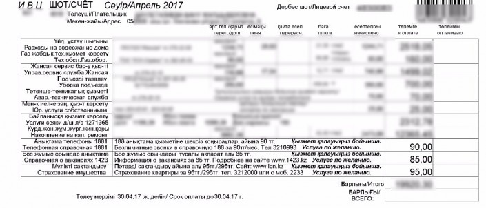 Между тем в квитанциях ТОО "ИВЦ" за апрель строка "Страхование недвижимости" сохранилась.