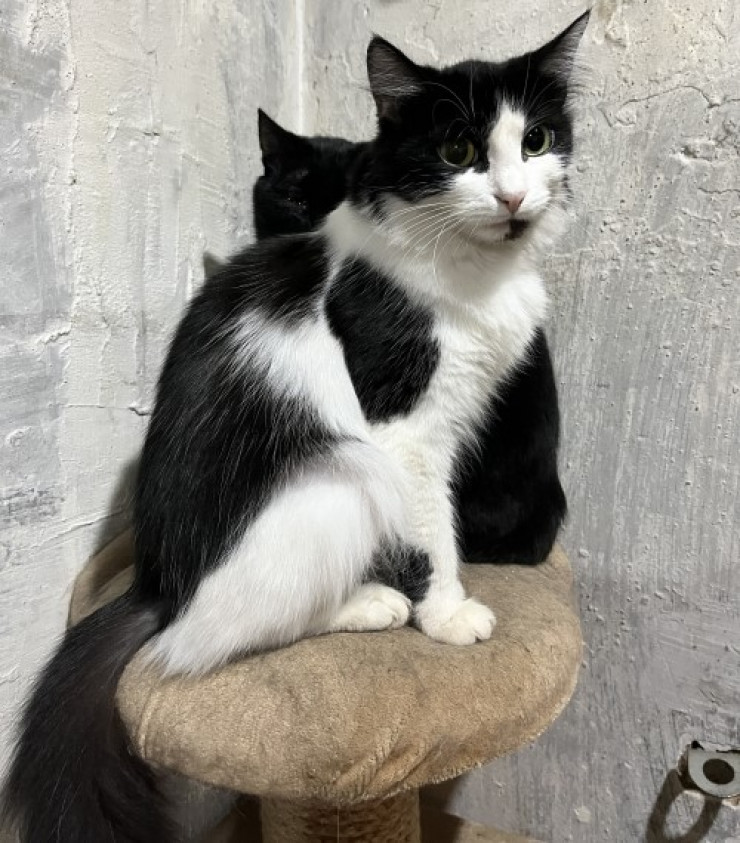Кошка с классическим именем Мурка. Черно-белая, пушистая, любит общение, любопытная. Возраст кошечки волонтеры не указали.