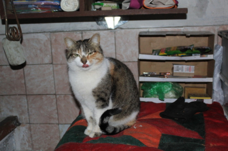 Взрослый кот по кличке Рыжий. Дружелюбный, любит воду и все, что с ней связано. Когда ее наливают в ведро или чайник, Рыжий бежит смотреть.