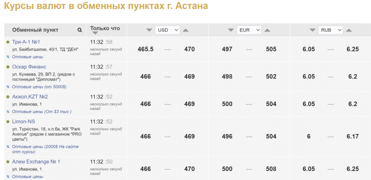 В обменных пунктах Алматы ситуация с долларом незначительно лучше, в среднем продажа сложилась на уровне 469 тенге. Но и покупают американскую валюту алматинские обменники дешевле - в среднем по 464-465 тенге.